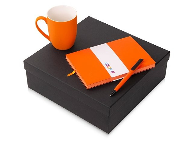 Color It — линейка, в которую входят хиты мерча в десяти самых популярных цветах. Еще никогда собрать сет под свой брендбук не было так просто. Широкая цветовая палитра серии позволяет создать идеальный набор в едином оттенке Pantone. Все товары имеют тактильно приятное покрытие софт-тач. Сет поставляется в коробке: мы продумали все, включая подарочную упаковку, за вас — осталось нанести лого! Фарфоровая кружка с удобной ручкой брендируется методом гравировки, поэтому нанесение будет долговечным и не сотрётся при мытье кружки. Бизнес-блокнот в гибкой обложке имеет ляссе в тон обложки и среза. Бумажный блок разлинован в линейку и выполнен из бумаги, полученной из древесины из специальных восполняемых лесных ресурсов, имеет сертификат FSC. Тонкое письмо ручки обеспечивается пишущим узлом с толщиной письма 0,5 мм с нажимным механизмом. Ручка имеет сменный стержень, поэтому такой мерч прослужит дольше обычной одноразовой ручки, долго напоминая о вас клиентам. - объём кружки: 300 мл; - блокнот А5 128 листов; - ручка с необычным слайдером; - подарочная упаковка из картона, оклеенного дизайнерской бумагой уже включена в набор.