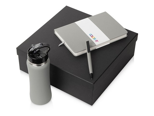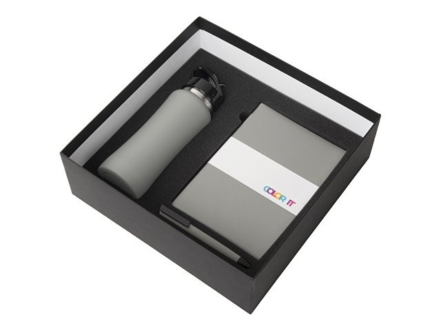 Color It — линейка, в которую входят хиты мерча в десяти самых популярных цветах. Еще никогда собрать сет под свой брендбук не было так просто. Широкая цветовая палитра серии позволяет создать идеальный набор в едином оттенке Pantone. Все товары имеют тактильно приятное покрытие софт-тач. Сет поставляется в коробке: мы продумали все, включая подарочную упаковку, за вас — осталось нанести лого! Спортивная бутылка для воды сделана из нержавеющей стали, а в пластиковой крышке предусмотрено специальное отверстие для питья, которое позволяет пить в движении. Бизнес-блокнот в твёрдой обложке имеет ляссе в тон обложки и среза. Бумажный блок разлинован в линейку и выполнен из бумаги, полученной из древесины из специальных восполняемых лесных ресурсов, имеет сертификат FSC. Тонкое письмо ручки обеспечивается пишущим узлом с толщиной письма 0,5 мм с нажимным механизмом. Ручка имеет сменный стержень, поэтому такой мерч прослужит дольше обычной одноразовой ручки, долго напоминая о вас клиентам. - объём бутылки: 600 мл; - блокнот А5 128 листов; - ручка с необычным слайдером; - подарочная упаковка из картона, оклеенного дизайнерской бумагой уже включена в набор.
