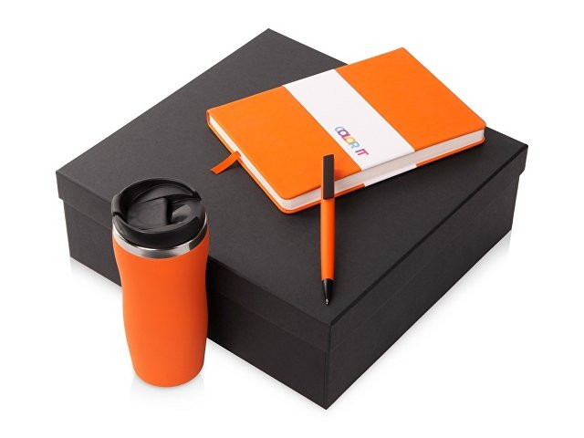 Color It — линейка, в которую входят хиты мерча в десяти самых популярных цветах. Еще никогда собрать сет под свой брендбук не было так просто. Широкая цветовая палитра серии позволяет создать идеальный набор в едином оттенке Pantone. Все товары имеют тактильно приятное покрытие софт-тач. Сет поставляется в коробке: мы продумали все, включая подарочную упаковку, за вас — осталось нанести лого! Термокружка оснащена плотно завинчивающейся крышкой, которая исключает проливание содержимого. Откидной клапан позволяет пить, не снимая крышку. Сохранение температуры осуществляется благодаря вакуумной изоляции и двойным стенкам. Бизнес-блокнот в твёрдой обложке имеет ляссе в тон обложки и среза. Бумажный блок разлинован в линейку и выполнен из бумаги, полученной из древесины из специальных восполняемых лесных ресурсов, имеет сертификат FSC. Тонкое письмо ручки обеспечивается пишущим узлом с толщиной письма 0,5 мм с нажимным механизмом. Ручка имеет сменный стержень, поэтому такой мерч прослужит дольше обычной одноразовой ручки, долго напоминая о вас клиентам. - объём термокружки: 350 мл; - блокнот А5 128 листов; - ручка с необычным слайдером; - подарочная упаковка из картона, оклеенного дизайнерской бумагой уже включена в набор.