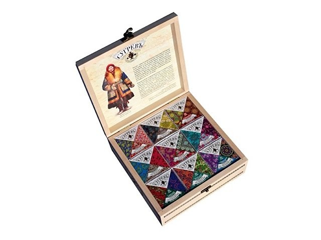 Чайный набор «Сокровища Севера» посвящён коренным малочисленным народам Севера, Сибири и Дальнего Востока России, на чьих исконных землях и добывается то, что делает нашу страну сильнее и богаче. Чаепитие – начало диалога. Поэтому давайте выпьем чая и немного поговорим об этом! Давайте с вниманием и интересом посмотрим на уникальный быт, костюмы и языки коренных народов, которые уже самим фактом своего существования вносят неоценимый вклад в этническое и культурное разнообразие России. Умный интеллигентный подарок для друзей, коллег, партнёров; оригинальный сувенир из России для иностранцев; небанальный подарок руководителю; презент для учителей, врачей и т.д.; вкусный чай для личного потребления. Состав: Чайный напиток по-саамски: чага, чёрный чай, лист брусники, корень ангелики. Чайный напиток по-чукотски: стебли шикши, листья брусники, багульник. Чайный напиток по-хантыйски: иван-чай, шиповник, цветы таволги. Чайный напиток по-юкагирски: иван-чай, чабрец, змееголовик, чёрная смородина. Чайный напиток по-ненецки: багульник, шиповник, листья брусники, чага. Чайный напиток по-корякски: иван-чай, таволга, облепиха, родиола розовая. Чайный напиток по-нанайски: лоза и ягоды лимонника дальневосточного, чай зелёный. Чайный напиток по-нивхски: лист ореха маньчжурского, мята, лист брусники, лист чёрной смородины. Чайный напиток по-эвенкийски: чёрный чай, чабрец, иван-чай, ягоды можжевельника. Не содержит ГМО, ароматизаторов, вкусовых добавок. Полностью натуральный продукт.