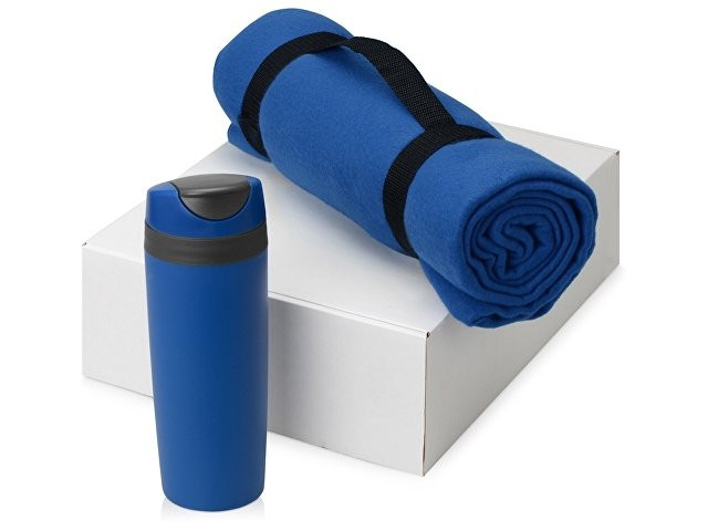 Подарочный набор Cozy с пледом и термокружкой, синий