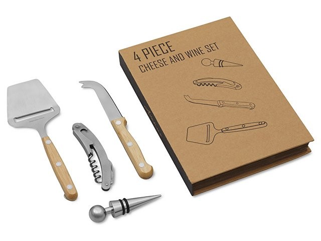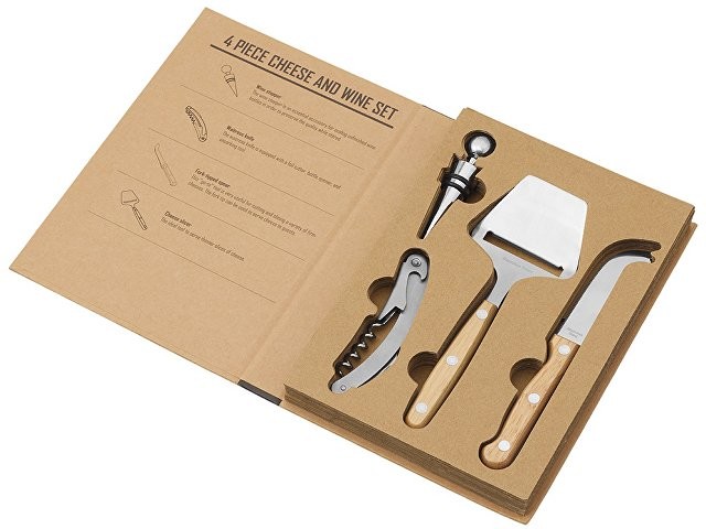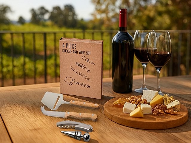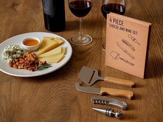 Премиальный набор для сыра и вина "Reze"— идеальный подарок для гурманов и ценителей изысканных вечеров. В стильной упаковке-книжке вы найдёте 4 инструмента: нож и слайсер для сыра, штопор и винную пробку. Комбинация нержавеющей стали и деревянных ручек придаёт элегантности и долговечности. Стильно, практично, со вкусом!