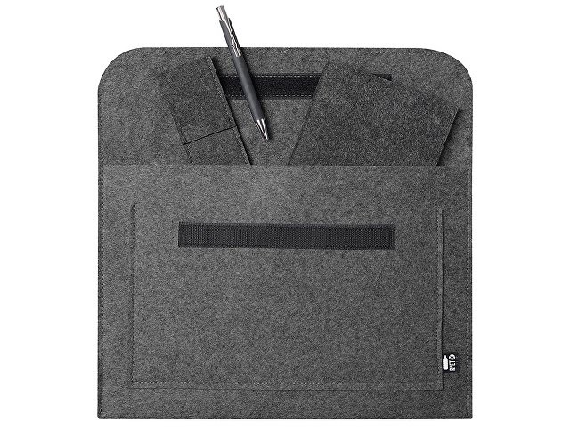 Стильный и функциональный набор для тех, кто ценит простоту и экологичность. В комплект входят: • Блокнот A5 в мягкой обложке из переработанного фетра, • Шариковая кнопочная ручка в бумажном корпусе с пластиковыми деталями, • Пенал для ручки из переработанного фетра, • Вместительный чехол для ноутбуков/планшетов до 14" из переработанного фетра, который служит упаковкой набора. Идеально подходит для офиса, учебы и путешествий. Лаконичный дизайн и натуральные материалы создают ощущение уюта и продуманности в каждой детали.