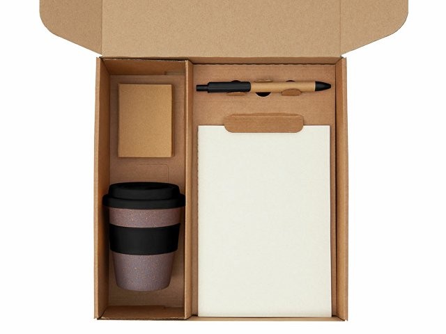 Эко - набор "Halm"— стильный и экологичный подарок, который сочетает практичность и заботу о природе. Такой набор отлично подойдёт сотрудникам, клиентам и партнёрам, которые ценят экологичность и практичность. Блокнот из переработанных пакетов для молока для экологичных идей, заметок и планов на день; Ручка из картона, которая всегда под рукой; Стакан из бамбукового волокна, экологичная альтернатива пластиковым и одноразовым стаканам; Благодаря удобному размеру набор стикеров будет незаменимой принадлежностью на любом столе! В твердой обложке размещены ярлыки для страниц пяти ярких цветов и набор клейких листов. Универсальный ложемент обеспечивает аккуратное размещение и надёжную фиксацию элементов, делая набор эффектным и презентабельным при вручении. Дополнительное преимущество — набор доступен в конструкторе наборов: компоненты можно заменить и собрать индивидуальный вариант под стиль компании или вкусы получателя.