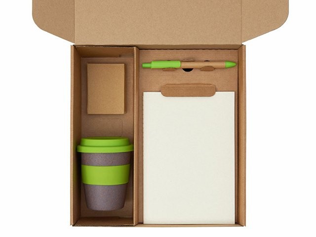 Эко - набор "Halm"— стильный и экологичный подарок, который сочетает практичность и заботу о природе. Такой набор отлично подойдёт сотрудникам, клиентам и партнёрам, которые ценят экологичность и практичность. Блокнот из переработанных пакетов для молока для экологичных идей, заметок и планов на день; Ручка из картона, которая всегда под рукой; Стакан из бамбукового волокна, экологичная альтернатива пластиковым и одноразовым стаканам; Благодаря удобному размеру набор стикеров будет незаменимой принадлежностью на любом столе! В твердой обложке размещены ярлыки для страниц пяти ярких цветов и набор клейких листов. Универсальный ложемент обеспечивает аккуратное размещение и надёжную фиксацию элементов, делая набор эффектным и презентабельным при вручении. Дополнительное преимущество — набор доступен в конструкторе наборов: компоненты можно заменить и собрать индивидуальный вариант под стиль компании или вкусы получателя.