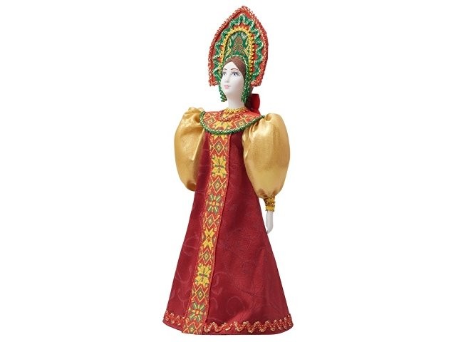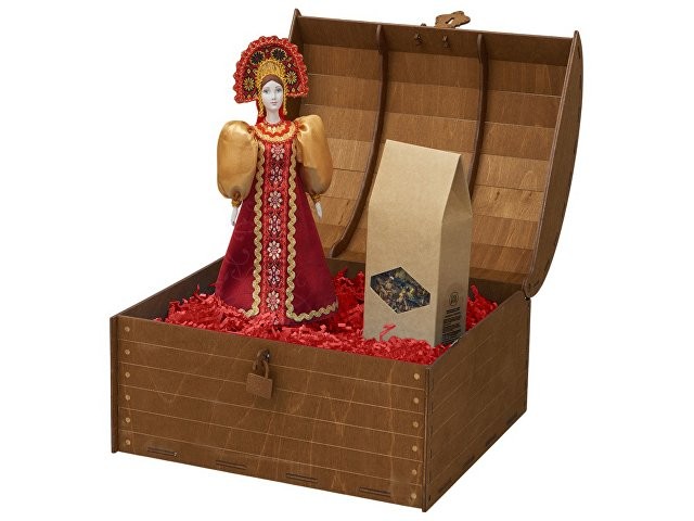 Подарочный набор с фарфоровой куклой и ароматным чаем. Гармония русских традиций, уюта и изысканного вкуса воплотилась в этом изысканном подарке. Набор станет прекрасным презентом для близких, деловых партнеров или иностранных гостей, желающих прикоснуться к русской культуре. Комплектация: - Фарфоровая кукла в народном костюме ручной работы: алый сарафан с пышными рукавами и расшитый кокошник создают образ русской красавицы в праздничном наряде. - Фруктовый чай "Малина с мятой" (70 г) с нежным ягодным вкусом и освежающим мятным послевкусием. Идеальное дополнение для душевных посиделок. - Стильное оформление: синяя декоративная стружка подчеркивает благородство подарка и надежно фиксирует его содержимое. Особенности упаковки: Деревянный сундучок с замочком превращает набор в драгоценный ларец. Возможность нанесения именной таблички добавляет презенту индивидуальности, делая его по-настоящему памятным подарком.