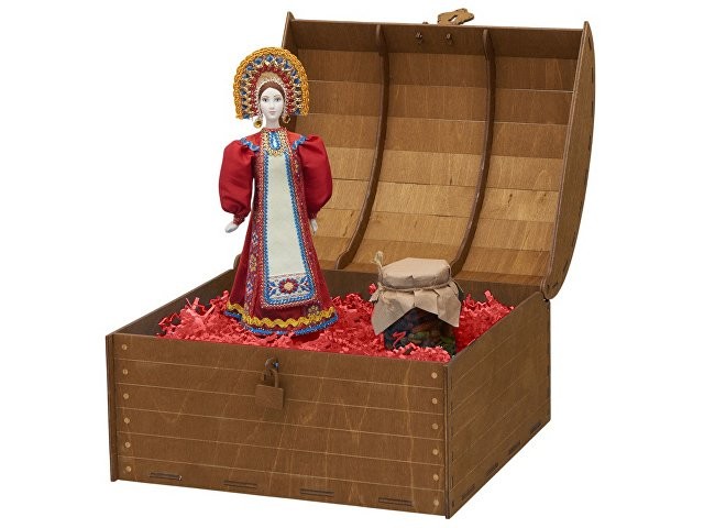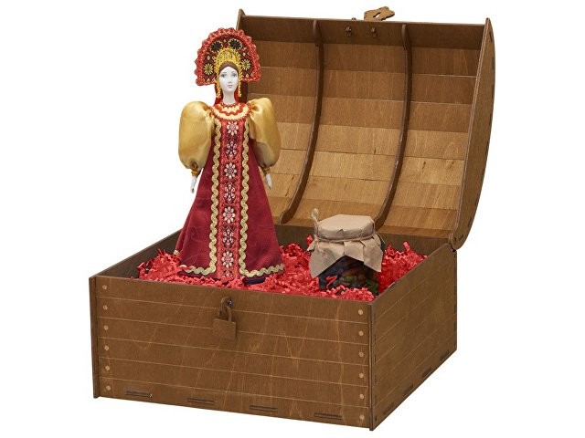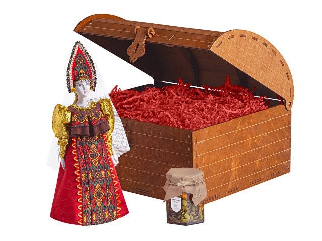 Подарочный набор словно сошёл со страниц русской сказки: в нём гармонично переплелись изящество ручной работы и щедрость родной природы. Каждый элемент продуман до мелочей, чтобы создать неповторимую атмосферу тепла и исконно русского гостеприимства. Комплектация: 1. Фарфоровая кукла в народном костюме ручной работы: Яркий расшитый сарафан и традиционный кокошник с изящной вышивкой. 2. Натуральный мёд с грецким орехом (250 г): Отборный цветочный мёд с грецким орехом. Упакован в стеклянную баночку с винтовой крышкой. 3. Декор из бумажной стружки придаёт композиции глубину и благородство, бережно сохраняя все элементы набора. 4. Деревянный сундук с изящным замочком превращает вручение подарка в особый ритуал. Дополнительное брендирование шильдом спектрум делает презент эксклюзивным и памятным. Для ценителей аутентичных сувениров и изысканных вкусов.