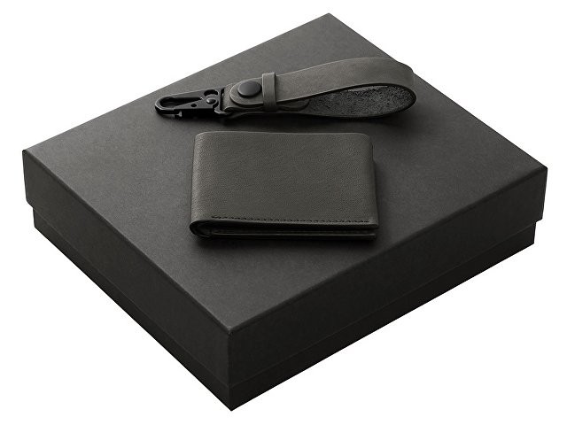 Подарочный набор Long River: кошелек, ремешок для ключей (без лого Long River), черная коробка