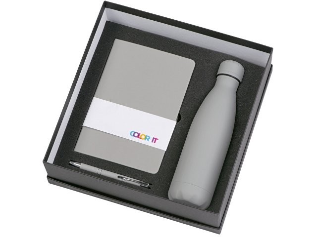 Подарочный набор с блокнотом С1, металлической ручкой и термобутылкой, серый