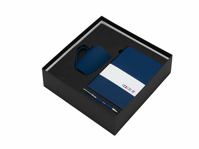 Color It — линейка, в которую входят хиты мерча в десяти самых популярных цветах. Еще никогда собрать сет под свой брендбук не было так просто. Широкая цветовая палитра серии позволяет создать идеальный набор в едином оттенке Pantone. Все товары имеют тактильно приятное покрытие софт-тач. Сет поставляется в коробке: мы продумали все, включая подарочную упаковку, за вас — осталось нанести лого! Фарфоровая кружка с удобной ручкой брендируется методом гравировки, поэтому нанесение будет долговечным и не сотрётся при мытье кружки. Бизнес-блокнот в твёрдой обложке имеет ляссе в тон обложки и среза. Бумажный блок разлинован в линейку и выполнен из бумаги, полученной из древесины из специальных восполняемых лесных ресурсов, имеет сертификат FSC. Шариковая ручка имеет сменный стержень, поэтому такой мерч прослужит дольше обычной одноразовой ручки, долго напоминая о вас клиентам. - объём кружки: 300 мл; - блокнот А5 128 листов; - ручка с необычным слайдером; - подарочная упаковка из картона, оклеенного дизайнерской бумагой уже включена в набор