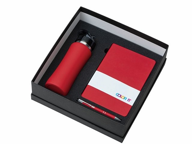 Color It — линейка, в которую входят хиты мерча в десяти самых популярных цветах. Еще никогда собрать сет под свой брендбук не было так просто. Широкая цветовая палитра серии позволяет создать идеальный набор в едином оттенке Pantone. Все товары имеют тактильно приятное покрытие софт-тач. Сет поставляется в коробке: мы продумали все, включая подарочную упаковку, за вас — осталось нанести лого! Спортивная бутылка для воды сделана из нержавеющей стали, а в пластиковой крышке предусмотрено специальное отверстие для питья, которое позволяет пить в движении. Бизнес-блокнот в твёрдой обложке с магнитным держателем для ручки имеет ляссе в тон обложки. Бумажный блок разлинован в линейку и выполнен из бумаги, полученной из древесины из специальных восполняемых лесных ресурсов, имеет сертификат FSC. Шариковая ручка имеет сменный стержень, поэтому такой мерч прослужит дольше обычной одноразовой ручки, долго напоминая о вас клиентам. - софт-тач покрытие на всех предметах набора; - объём бутылки: 600 мл; - блокнот А5 128 листов; - ручка с необычным слайдером; - подарочная упаковка из картона, оклеенного дизайнерской бумагой уже включена в набор.