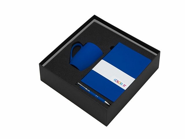 Подарочный набор с блокнотом С3, металлической ручкой и кружкой, синий