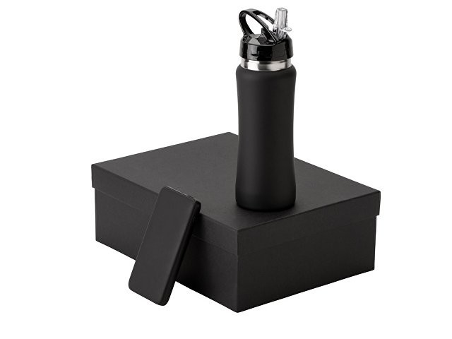 Подарочный набор с бутылкой для воды и повербанком С2, 10000 mAh, черный