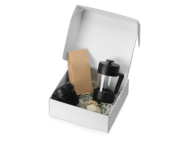Набор "Бодрое утро" содержит все необходимое для действительно приятного пробуждения. В нем вы найдете все, что нужно для приготовления вашей первой чашечки кофе с утра: френч-пресс, упаковку робусты темной обжарки, стакан с силиконовыми деталями и баночку крем-меда, который составит прекрасную пару крепкому напитку. Набор упакован в белую картонную коробку и переложен бумажным наполнителем.
