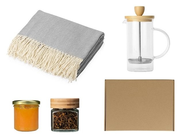 Такой набор — это прекрасный подарок для тех, кто ценит уют и любит наслаждаться ароматным чаем наедине с собой или в приятной компании. Элегантный френч-пресс с крышкой из букового дерева изготовлен из термостойкого боросиликатного стекла, а поршень и пресс-фильтр с уплотнительным кольцом из высококачественной пищевой нержавеющей стали марки 304. Его объем рассчитан на одну стандартную кружку или две небольшие кофейные чашки. Френч-пресс идеально подойдет для заваривания не только кофе, но и чая или любых травяных напитков. Плотный мягкий плед из натурального хлопка украшен бахромой. Можно использовать как теплое одеяло или как покрывало для украшения интерьера. Чай «Дянь Хун» отличается терпким вкусом с оттенком мёда, он хорошо омолаживает, бодрит и поднимает настроение на целый день. А неожиданный дуэт мандаринов и белого шоколада в варенье — настоящая находка для ценителей редких, оригинальных вкусов. - ручка френч-пресса не нагревается; - размер пледа 150 х 180 ( ±5) см; - вес чая: 40 гр; - стеклянная банка сохраняет аромат чая; - подарочная коробка входит в набор. Максимально рекомендованная температура воды для френч-пресса составляет 120℃. Не рекомендуется использовать в посудомоечной машине и микроволновой печи.