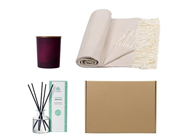 Материал: плед - 100% хлопок, аромат для дома - стекло, фибровые палочки, свеча - воск, стекло, дерево, коробка - картон