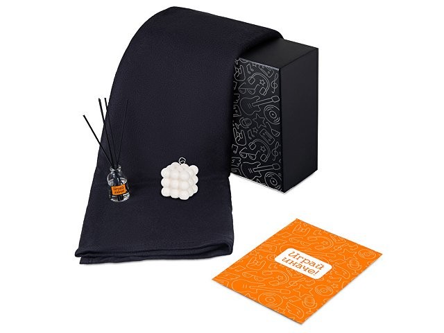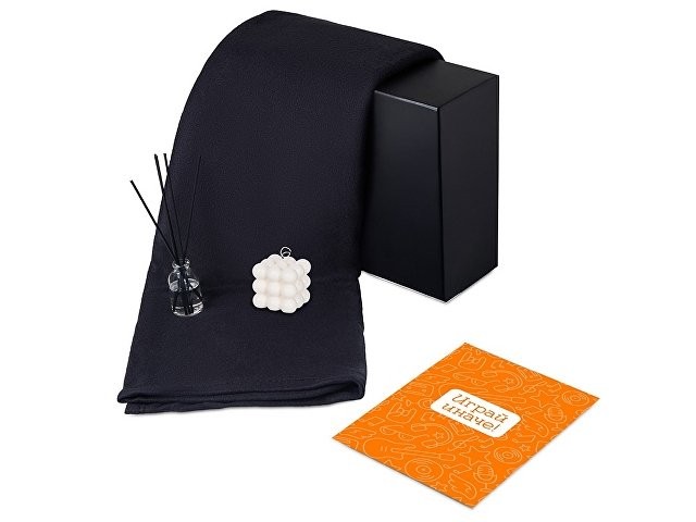 Подарочный набор с пледом, свечой и диффузором, черный