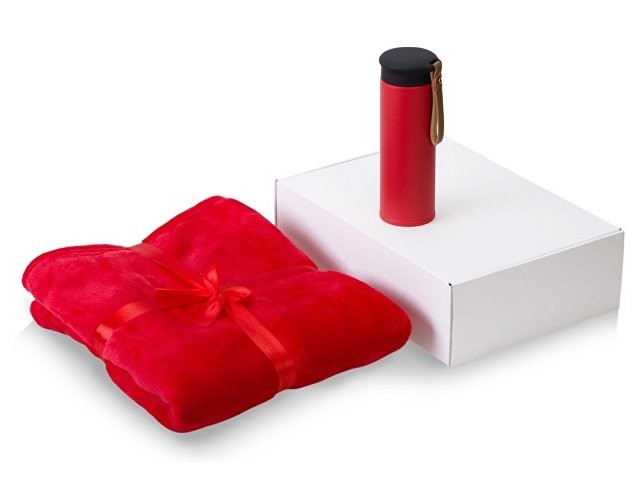 Подарочный набор с пледом, термосом "Cozy hygge" 2.0, красный