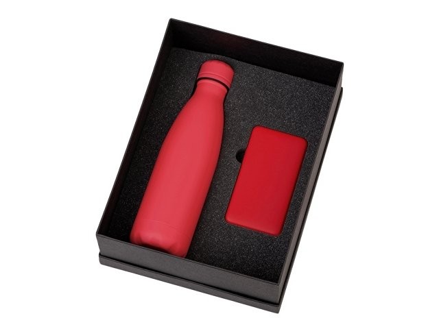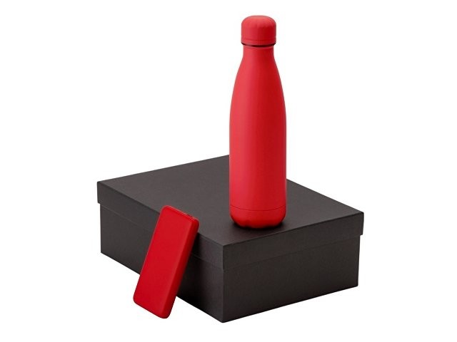Подарочный набор с термобутылкой и повербанком С2, красный
