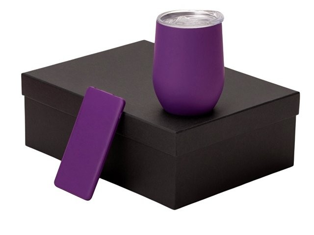 Подарочный набор с термокружкой и повербанком С1, 5000 mAh, фиолетовый