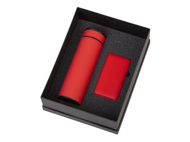 Подарочный набор с термосом и повербанком С2, красный