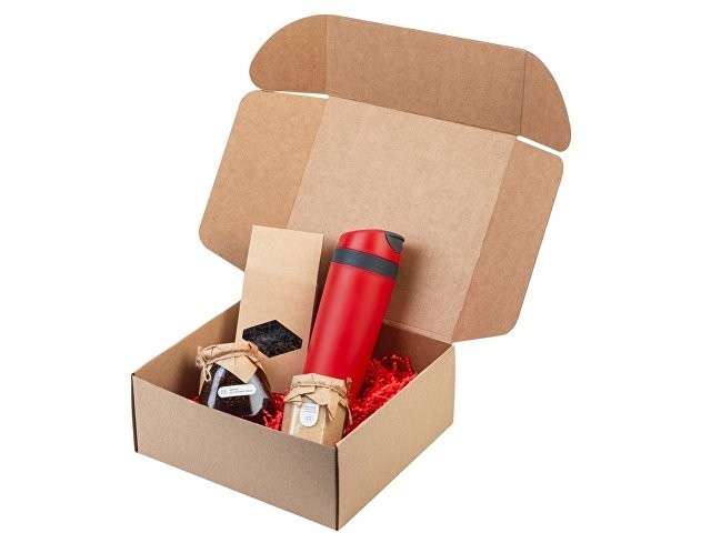 Материал: коробка - картон, банка - стекло, термокружка - полипропилен