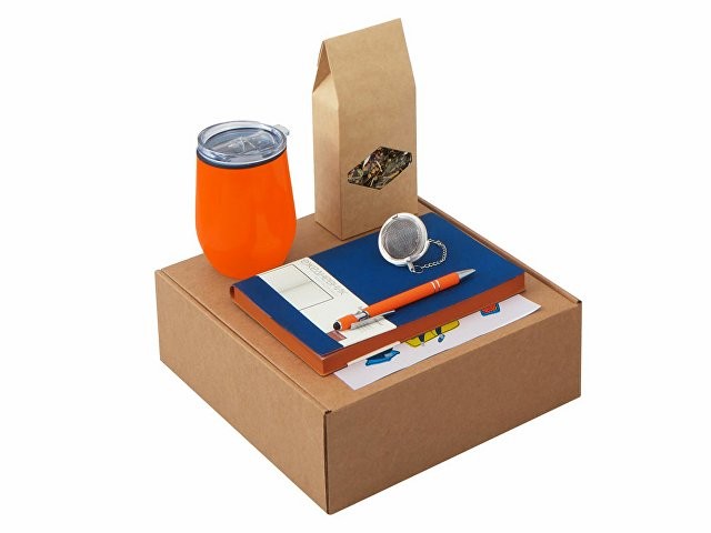 Набор "Writea" станет отличным подарком для сотрудников, клиентов и партнёров, подчеркнёт внимание к их комфорту и заботу о деталях. Он уместен как корпоративный подарок на праздники, юбилеи и деловые мероприятия, так и в качестве welcome-набора для новых коллег. Набор объединяет всё необходимое для комфортного рабочего дня: Ежедневник для идей, заметок и составления рабочих планов на день. В ежедневнике есть полезная справочная информация; Ручка, которая всегда под рукой; Практичная термокружка «Pot» отлично подойдет для использования как дома, так и в офисе, сохраняет тепло до 3-х часов; Ситечко для заваривания — незаменимая вещь для любителей чая. Оно помогает сохранить истинный вкус и аромат напитка, позволяя наслаждаться настоящим листовым чаем без лишних хлопот. Компактное и удобное, ситечко подходит для дома, работы, путешествий или отдыха на природе; Чай «Малина с мятой» - идеально подходит для вечернего расслабления после насыщенного дня; Набор стикеров — для ярких акцентов и персонализации вещей; Универсальный ложемент обеспечивает аккуратное размещение и надёжную фиксацию элементов, делая набор эффектным и презентабельным при вручении. Дополнительное преимущество — набор доступен в конструкторе наборов: компоненты можно заменить и собрать индивидуальный вариант под стиль компании или вкусы получателя.