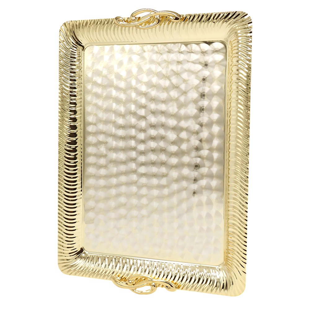 Поднос с ручками "VIOLINO" в подарочной упаковке Chinelli (Италия): Материал: Металл латунь Размер: 50 x 35 cm. Производитель: Chinelli. Подносы Chinelli – это настоящее произведение искусства! Именно на них хочется преподнести гостям лучшие угощения! Такой поднос - это выгодный аксессуар для банкета, званого ужина и даже просто скромного обеда в кругу близких друзей! Ведь такие изысканные мелочи помогают создать атмосферу тепла и уюта. Кроме того, на таких элегантных подносах в прошлые века хранили письма или драгоценности. Вы можете использовать такой поднос, как аксессуар для сервировки или в качестве самостоятельного элемента декора в интерьере вашей кухне или столовой. Покупка подноса от Chinelli может стать прекрасным дополнением в интерьер вашей кухни и гостиной, а также изысканным аксессуаром для праздничного застолья! Поднос с ручками "VIOLINO" в подарочной упаковке станет прекрасным подарком руководителю-женщине, семейным парам на юбилейные даты совместной жизни, и просто вашим любимым женщинам. Коллекция CHINELLI – это плавные линии, безупречное качество и оригинальный дизайн. Изящная отделка серебром делает каждый предмет идеальным украшением вашего интерьера. Марка CHINELLI это 40 лет бесценного опыта ручного производства, безупречного итальянского вкуса и европейского качества. Бренд воплощает в себе стиль и качество, соответствующий стандарту "Made in Italy". Компания расположена в долине Lumezzane провинции Brescia (Италия), которая с давних времен славится высоким мастерством в области обработки металла. На протяжении многих лет компания совмещает искусную работу ремесленников с промышленным производством. Характерной чертой CHINELLI является внедрение новейших технологий и способность быстро адаптироваться к изменчивости потребности рынка. Изделия марки CHINELLI с легкостью превратят встречу с друзьями в непревзойденную атмосферу праздника и уюта. Они отличаются безупречным качеством, роскошью исполнения и одновременно классической простотой стиля. Все изделия упакованы в фирменную подарочную упаковку с логотипом CHINELLI и сертификатом внутри.