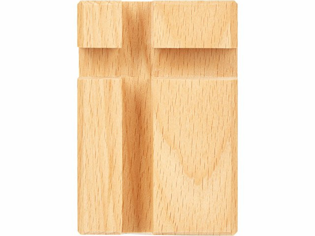 Подставка для смартфона сделана из высококачественного бука, что гарантирует прочность и экологическую безопасность изделия. В ней находятся две различные выемки, способные держать устройства различных размеров как с чехлом, так и без него. Материал  безопасен для использования на любых поверхностях. Легко моется теплой водой.