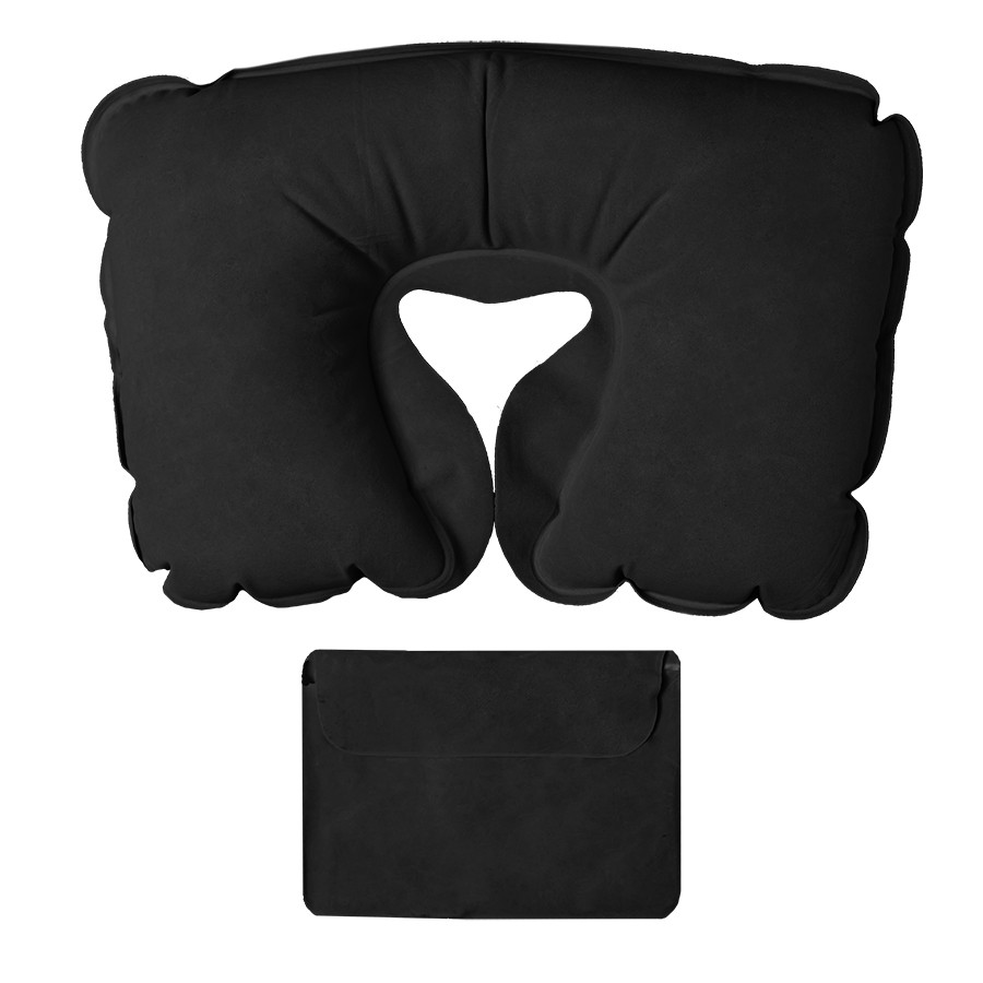 Подушка надувная дорожная WAY в футляре; желтый; 43,5х27,5 см; твил, Черный