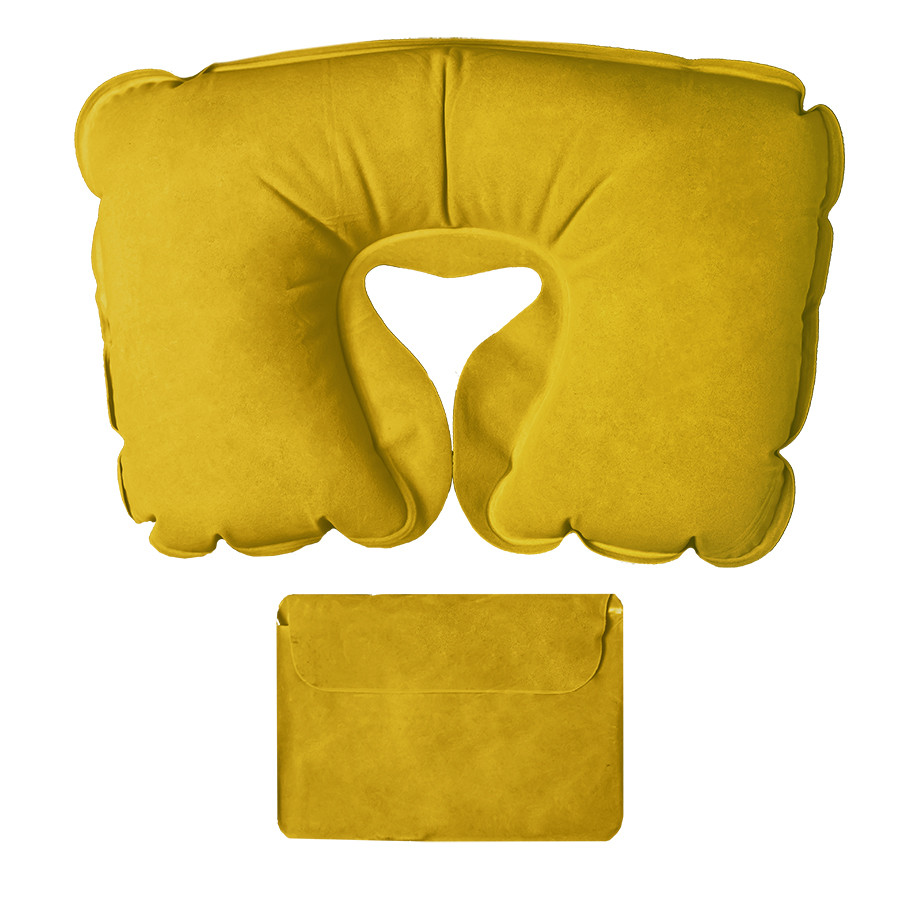 Подушка ROAD надувная дорожная в футляре; желтый; 43,5х27,5 см; твил, Жёлтый