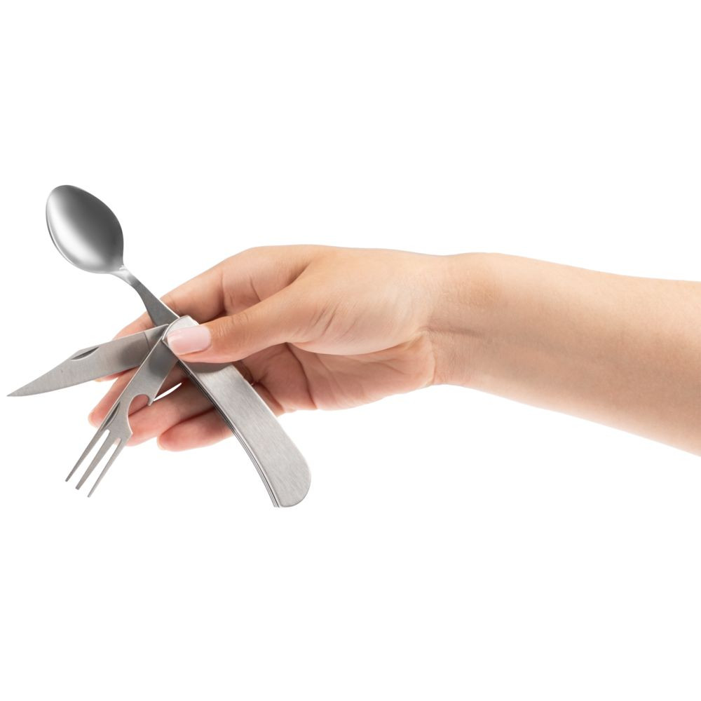 Набор состоит из 4 приборов: ложки, вилки, открывашки и ножа.