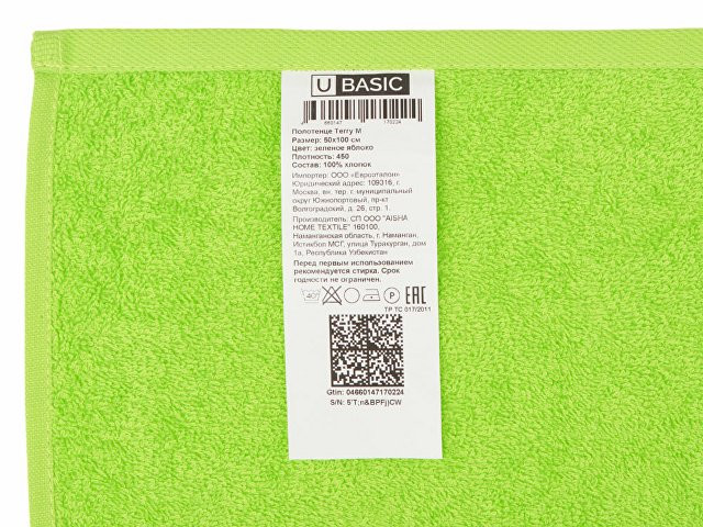 Поставляется в индивидуальном полиэтиленовом пакете. Наличие бордюра шириной 6 см с одной стороны для нанесения логотипа (допускается незначительное отклонение по ширине).