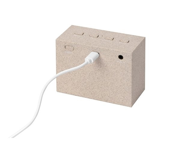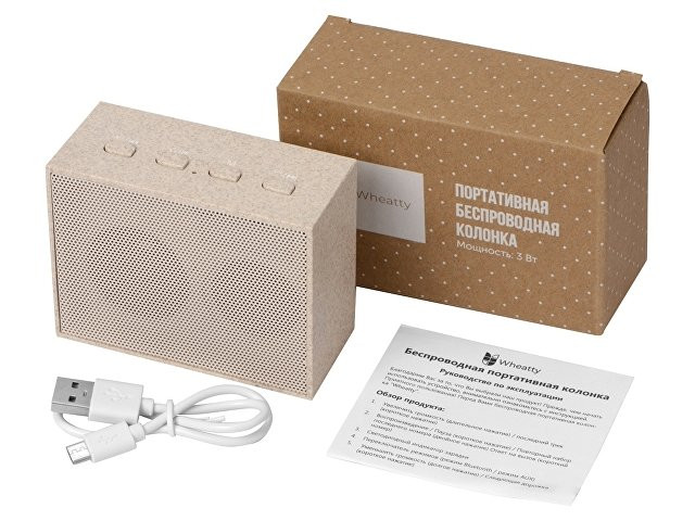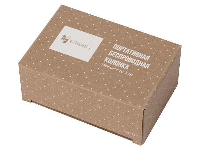 Беспроводная колонка "Wheatty" на 35% состоит из переработанной пшеничной соломы, что является положительным примером сокращения производства и потребления пластика в мире. Воспроизводит музыку в течение 3-х часов. Мощность 3 Вт. В колонке предусмотрены кнопки управления и линейный вход (AUX). Компактная колонка с быстрым подключением (Bluetooth 5.0). Поставляется в крафт упаковке из переработанной бумаги.