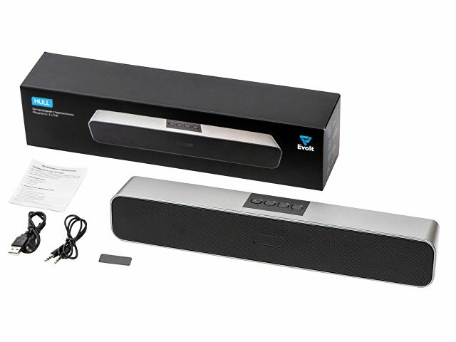 Портативная стереоколонка имеет два динамика по 3 Вт каждый, которые стереофонически распределяют звук. Саундбар воспроизводит музыку с USB-флешки и с SD-карты, а также по Bluetooth. - Cтереозвучание - Много возможностей нанесения — как полей, так и типов - Воспроизведение по Bluetooth, а также USB-флешки и с SD-карты