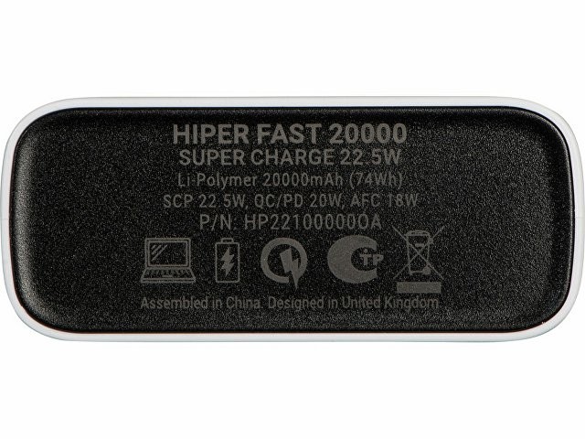 Портативный внешний аккумулятор HIPER FAST 20000 емкостью 20000 мАч (74Втч) оснащён двунаправленным портом USB-C, Micro-USB входом для зарядки, с поддержкой быстрой зарядки аккумулятора QC и PD, 2xUSB-A выходами, максимальный выходной ток 5А, максимальная мощность 22,5 Вт, поддержка быстрой зарядки стандарта QC 18 Вт, поддержка быстрой зарядки стандарта PD 18 Вт, стильный дизайн.