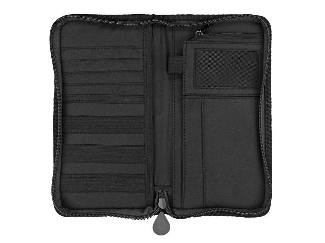 Портмоне для путешествий из прочного полиэстера сделает любую поездку более комфортной. Здесь предусмотрено место для паспорта, билетов и денег, кармашки для пластиковых карт, удобный держатель для ручки и фиксаторы на резинках для карточек или документов. Портмоне закрывается на молнию, а на его внешней стороне предусмотрен дополнительный карман для посадочного талона или других документов, которые приходится все время доставать. Портмоне «Вест» – прекрасный подарок для тех, кто любит путешествовать и проводит много времени в разъездах.