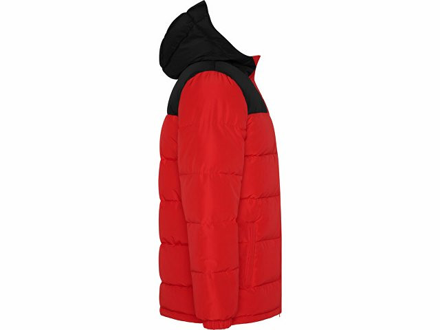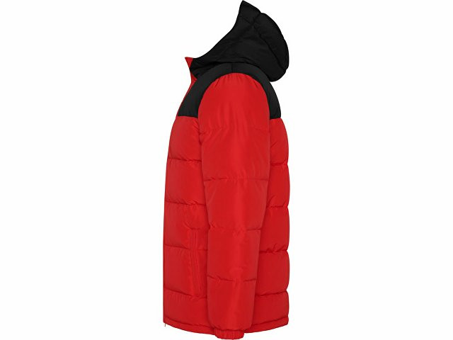 Утепленная куртка с капюшоном · передняя молния закрывается планкой · защита для подбородка · два боковых кармана на молнии · эластичный манжеты · специальный доступ для нанесения на спинке