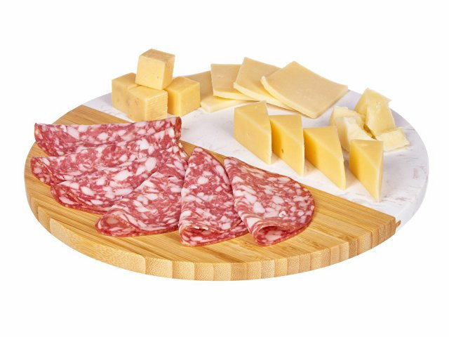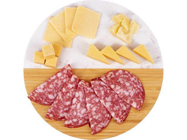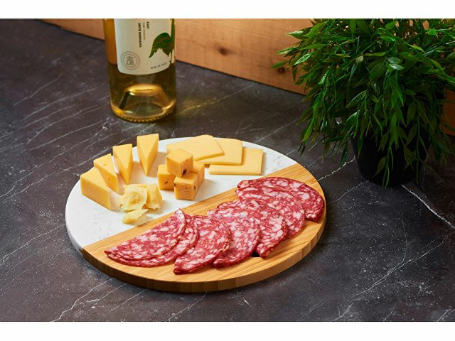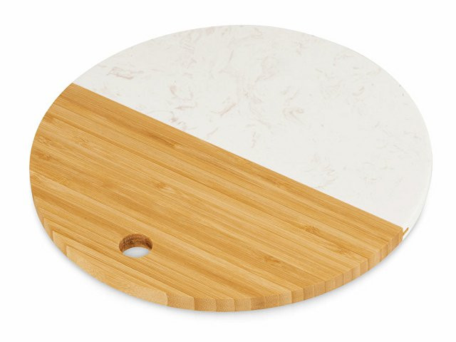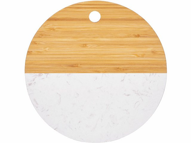 Разделочная доска от Eat&Bite состоит наполовину из бамбука, а вторая половина выполнена из мрамора. Это позволяет не только использовать доску для разделки, но и оригинально подать закуски, сыры или нарезки, зонируя виды снеков. - можно сочетать с другими товарами бренда Eat&Bite в сетах - для разделки и сервировки - необычное сочетание искусственного мрамора и бамбука можно обыграть интересным образом при помощи нанесения — например, при помощи надписей, «бегущих» в разные стороны, или выбором изображений, обыгрывающих разницу материалов - ушко для подвешивания Не рекомендуется мыть доску в посудомоечных машинах.