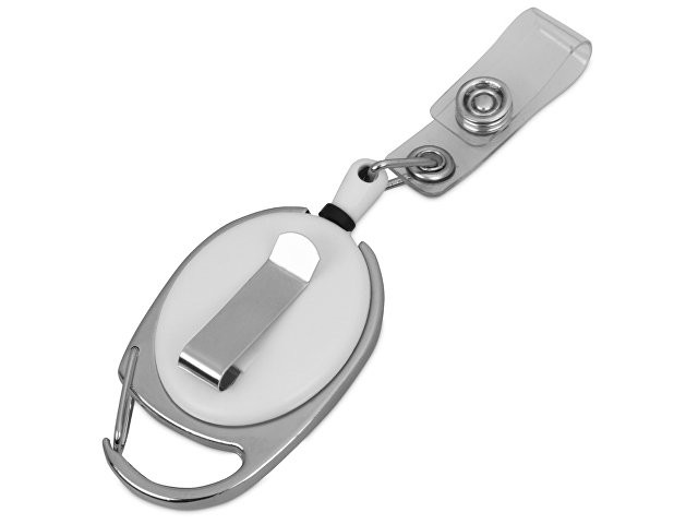 Ретрактор надежно крепится к поясу или другим вещам при помощи металлического карабина. Бейдж или пропуск удобно закрепляется кнопочным механизмом с петлей. Длина шнура - 90 см.