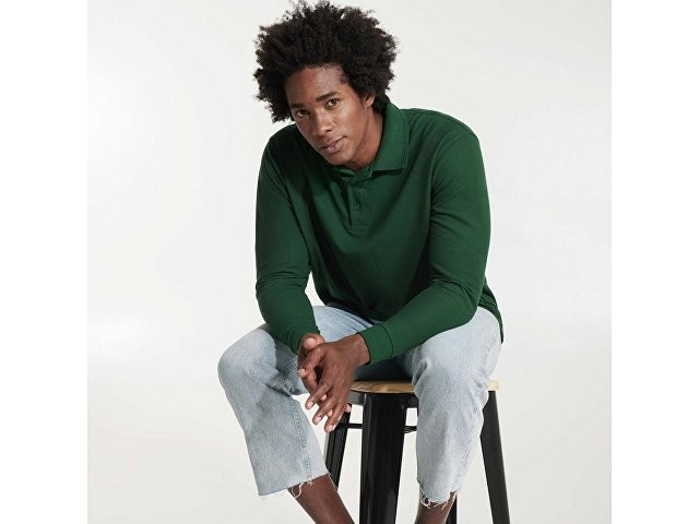 Рубашка поло "Carpe" мужская с длинным рукавом, бутылочный зеленый