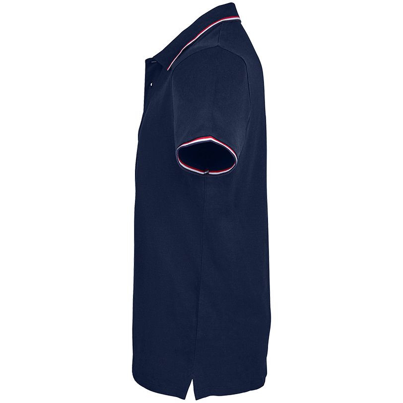 - Контрастные полоски на воротнике, по низу рукавов, внутри бокового разреза и на внутренней стороне ворота