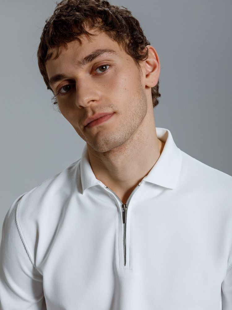 Мужская рубашка поло с длинным рукавом прямого силуэта.
