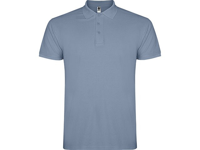 Поло с коротким рукавом, воротник и манжеты из риба 1х1, отделка горловины внутри тесьмой. Планка застегивается на 3 пуговицы. Разрезы в боковых швах. В ассортименте также представлены аналогичная женская модель "Star".