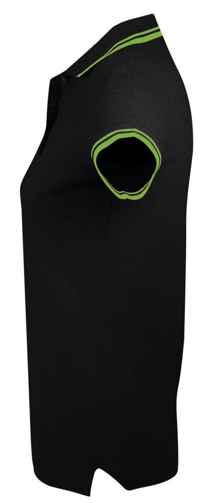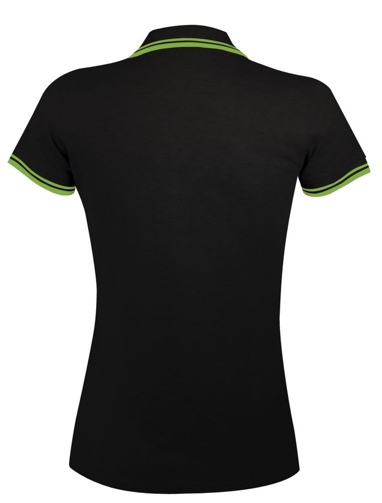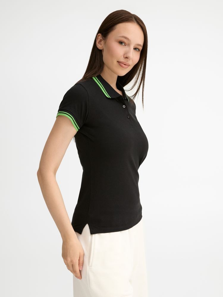 Рубашка поло женская Pasadena Women 200 с контрастной отделкой, черная с зеленым
