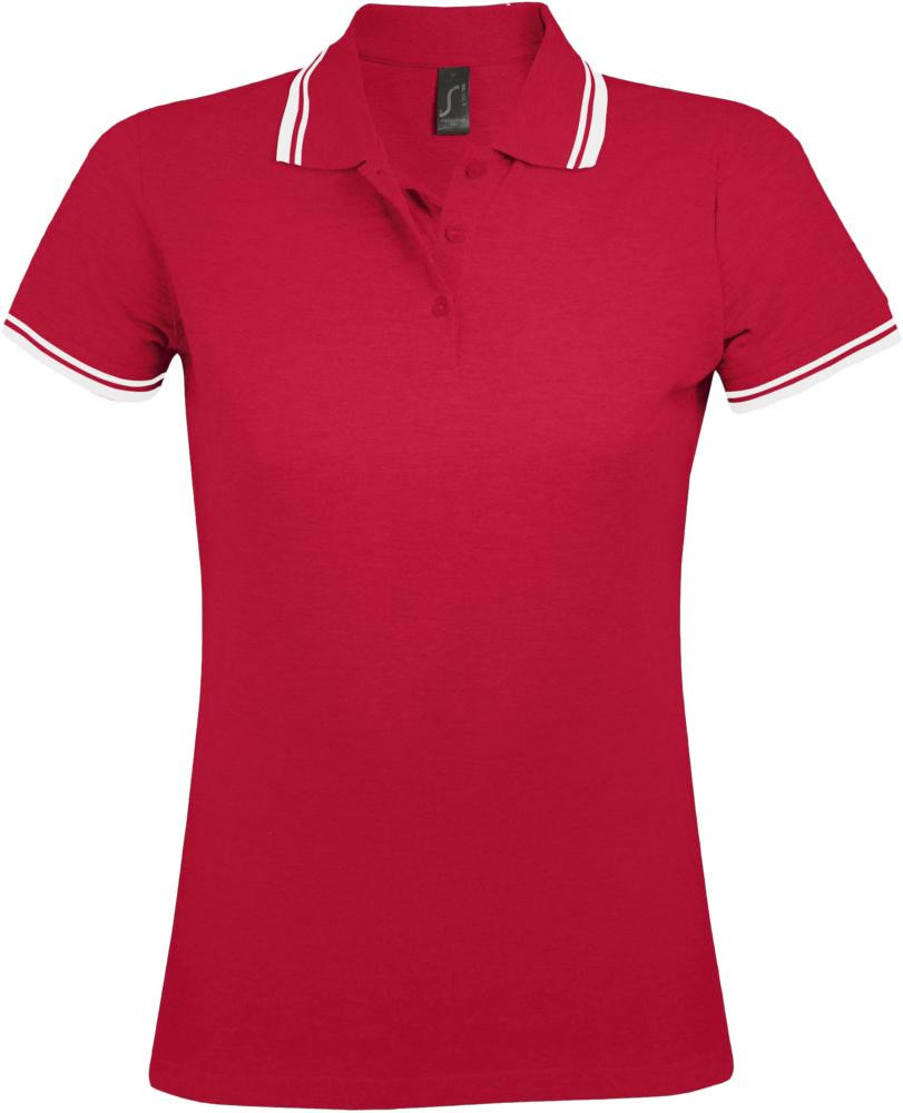 Рубашка поло женская Pasadena Women 200 с контрастной отделкой, красная с белым