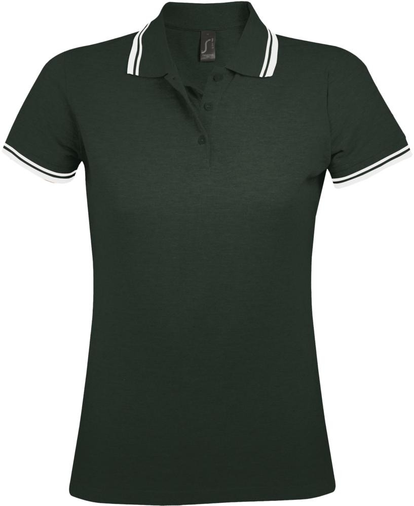 Рубашка поло женская Pasadena Women 200 с контрастной отделкой, зеленая с белым