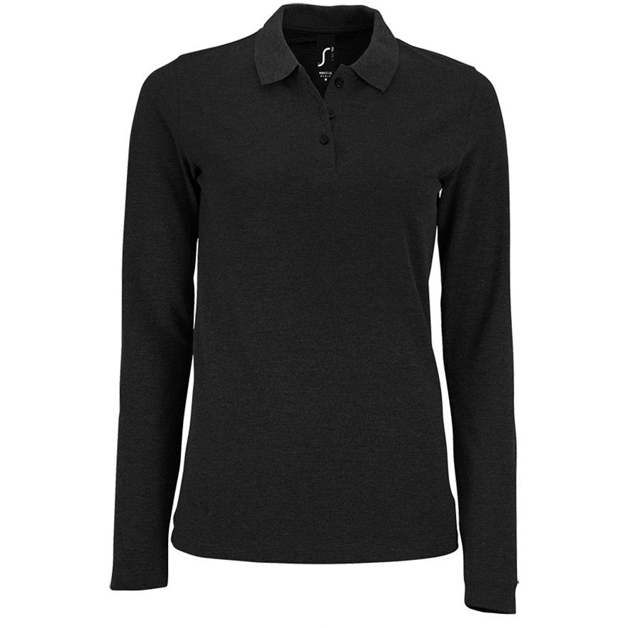 Рубашка поло женская с длинным рукавом Perfect LSL Women, черный меланж