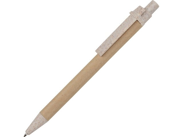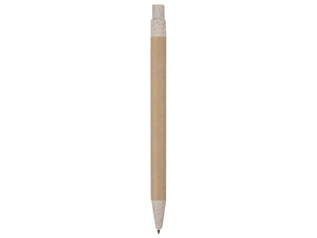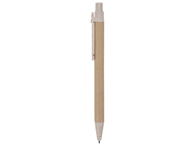 Шариковая ручка с нажимным механизмом. Удобный корпус сделан из переработанного картона. Клип, кнопка и носик ручки на 50% состоят из пшеничной соломы, на 50% — из переработанного пластика. Настоящая находка для тех, кто предпочитает использовать изделия из биоразлагаемых материалов и заботится о сохранности окружающей среды.