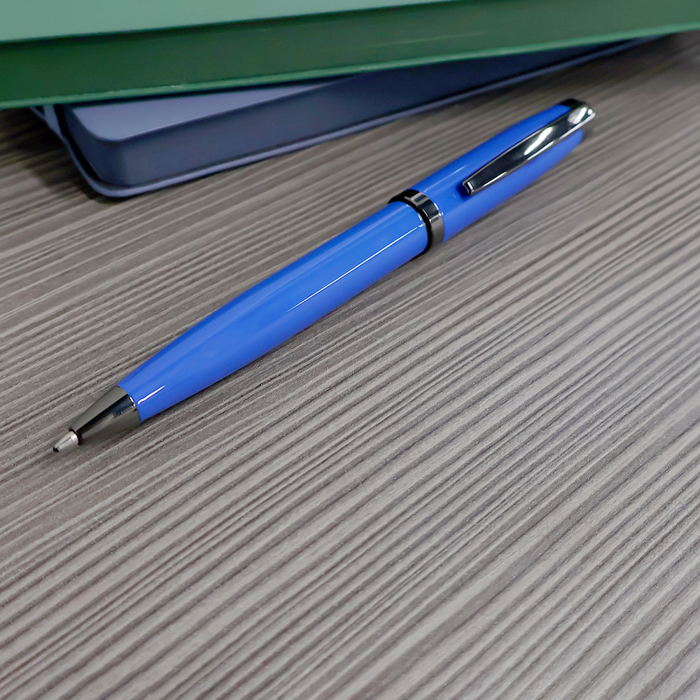 Наша Бетти — подарок для любителей более увесистых и солидных форм. Общий вес ручки — 33 грамма! У нашей красотки поворотный механизм, покрытый глянцем корпус из нержавеющей стали, стержень Паркер 0,7 мм с синими чернилами. Элементы ручки: клип, кольцо и дюбка покрыты ган-метал краской. Ручку приятно держать в руке и демонстрировать публике.